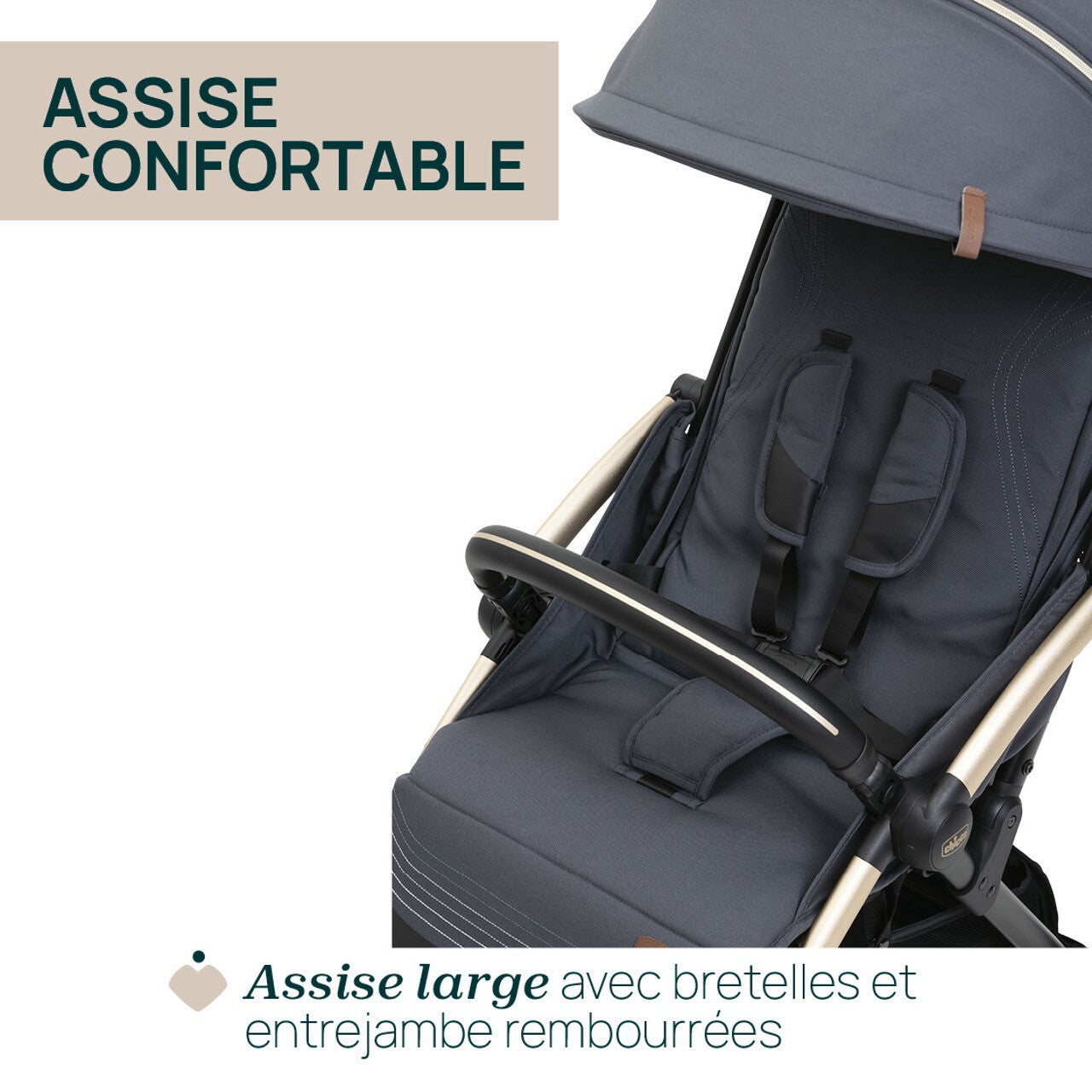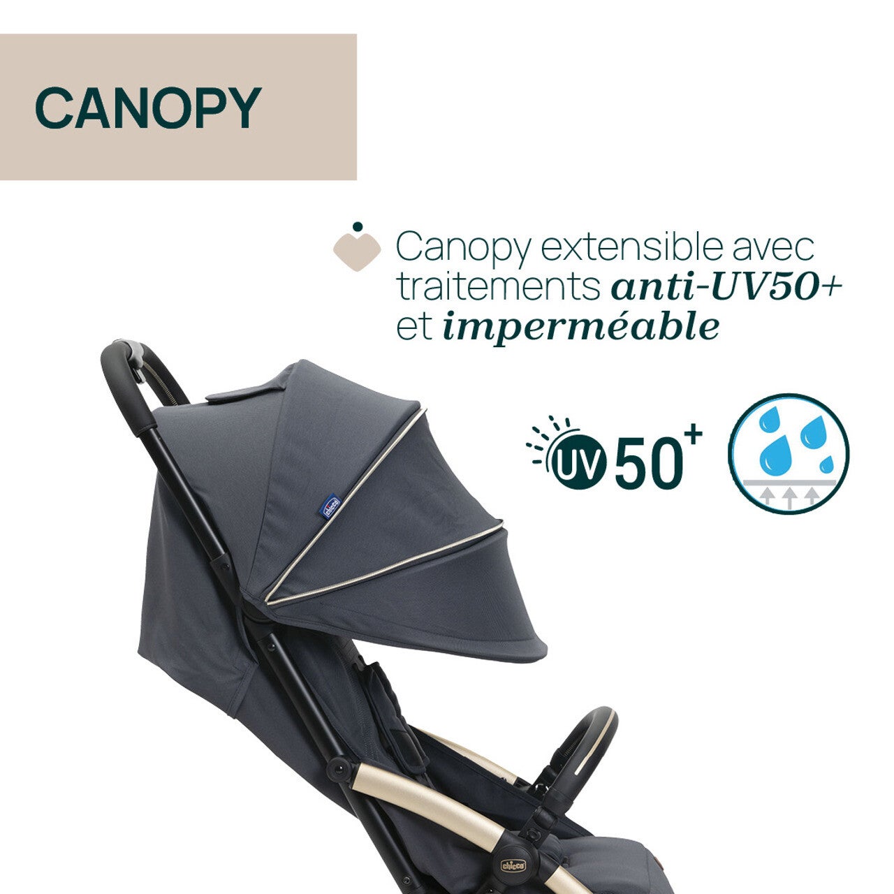 - Confort : siège rembourré large et confortable. Canopy entièrement équipé : extensible, imperméable et garantit une protection optimale grâce aux traitements UV50+. La fenêtre en maille permet de garder le contact visuel avec le bébé.