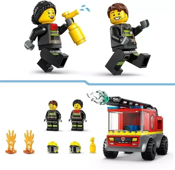 Les sets LEGO City Pompiers invitent à une infinité de scénarios de jeu sur terre, dans les airs et en mer. Les enfants peuvent combiner ce camion de pompiers avec d’autres modèles de la gamme LEGO City (vendus séparément) pour des aventures toujours plus palpitantes.