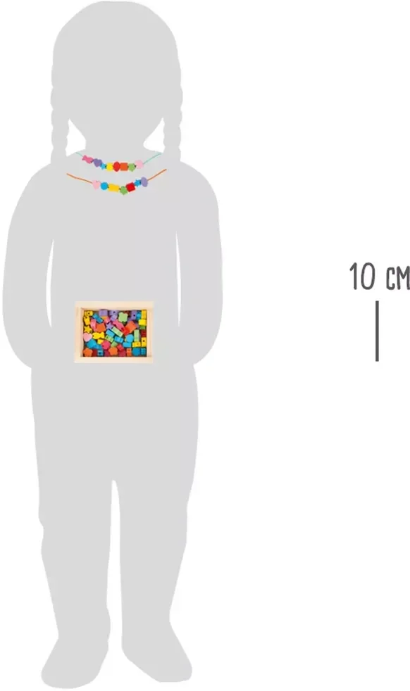 Qu'il s'agisse d'étoiles, de cœurs ou de fleurs, dans ce coffret en bois contenant des perles en bois certifié FSC® à 100 %, il y a ce qu'il faut pour chaque créateur de bijoux et il n'y a pas de limites à la créativité. C'est ainsi que de superbes colliers ou de jolis bracelets peuvent être créés. Enfiler des perles et des pierres entraîne la coordination œil-main et la motricité fine. Quel bijou sera créé ensuite ?