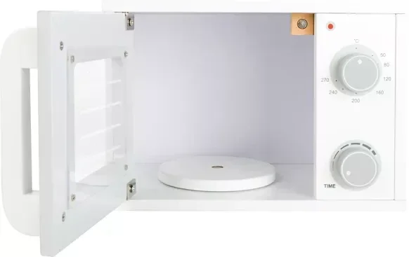 Ping... Le repas est prêt! Avec ce micro-ondes ludique en bois, les plats préparés sont réchauffés et préparés en un rien de temps. Le plateau tournant et la porte maintenue par un aimant offrent un plaisir réaliste. Les entrées de température et de temps peuvent être ajustées en tournant les boutons avec des clics. Un appareil électroménager pratique qui ne devrait manquer dans aucune cuisine d'enfant moderne et un complément idéal pour toutes les cuisines d'enfants qui ne disposent pas de micro-ondes.