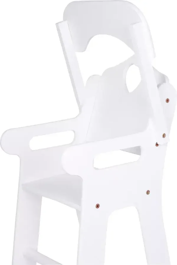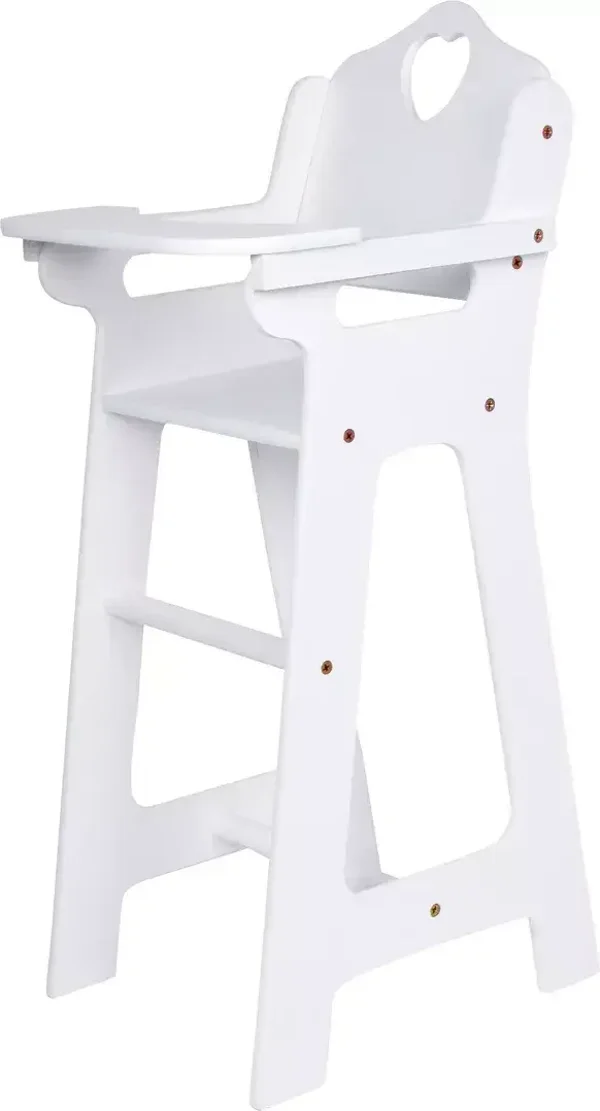 A table s'il vous plait ! Cette chaise haute pour poupée en bois robuste laqué blanc convainc immédiatement les parents de poupées responsables ! Un point fort pratique est la table pliable, qui permet aux poupées et aux peluches d'entrer et de sortir facilement. La chaise haute avec le joli cœur sur le dossier est un ajout élégant à la maison de poupée et, avec une hauteur de 63 cm, convient également pour la table à manger !