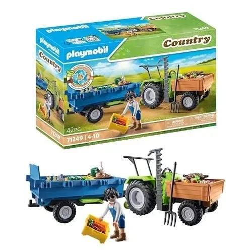 Playmobil 71249 Tracteur avec remorque - Country - La Vie à la Ferme - La Gamme Petite Ferme Comprend Plus de 80% de matériaux recyclés ou biosourcés en Moyenne - Dès 4 Ans Playmobil Playmobil