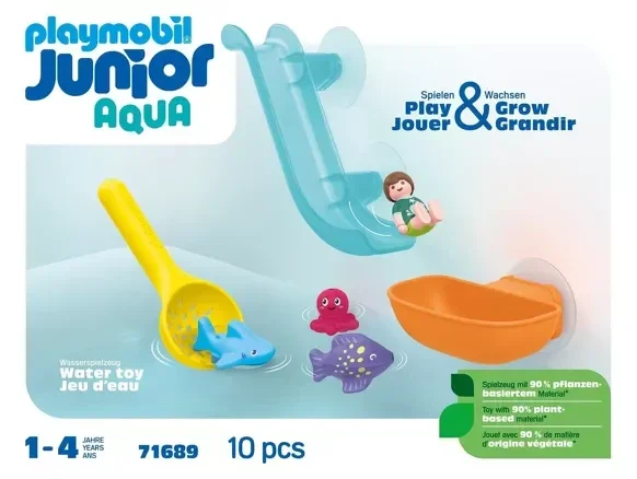 Playmobil 71689 Junior Aqua : Grand Toboggan Aquatique et Animaux Marins - incluant Un bébé Requin, des Poissons et Une Pieuvre - Jouet fabriqué à partir de matière d'origine végétale - Dès 12 Mois Playmobil Playmobil