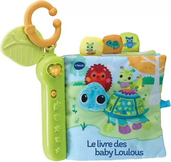 Livre toudoux des Loulous de 6 à 36 mois. Livre parlant et musical en tissu pour de nombreuses découvertes sur le thème de la nature et des animaux. Différents éléments à manipuler sur chaque page pour stimuler le sens du toucher : peluche, papier bruissant, petite marionnette, miroir, anneau de dentition, etc. Le coeur lumineux déclenche des mélodies et des chansons pour accompagner bébé en musique. Facile à transporter et à accrocher grâce à l'anneau. 4 chansons et 20 mélodies. Arrêt automatique.