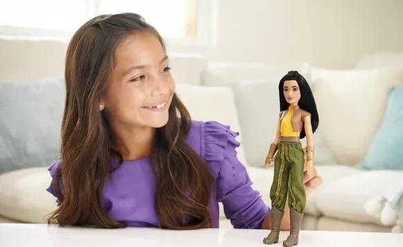 - Les enfants peuvent même s’amuser à coiffer les longs cheveux noirs de Raya !