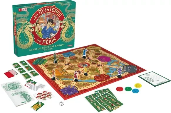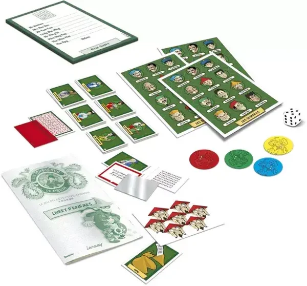Contient: 1 livret de 50 énigmes, un bloc de feuilles d’enquête, 4 grilles de suspects, 3 décodeurs, 1 carte écran pour désigner le coupable, 108 cartes, 6 pions détective, 4 jetons Dragon, un dé, une règle du jeu.