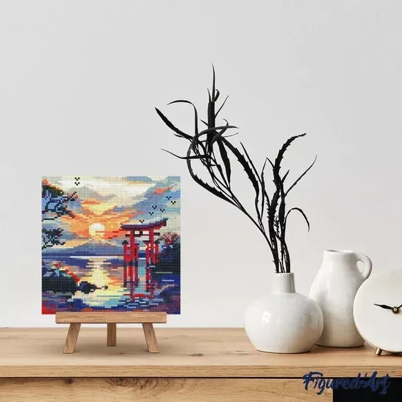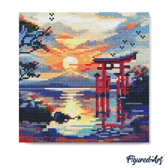 Mini Diamond Painting 25x25cm toile roulée - Porte Torii au coucher du soleil Figured'Art Figured'Art