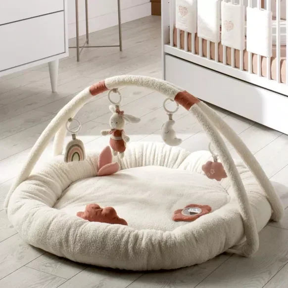 Le tapis d'éveil Petit Coeur de SAUTHON est un cadeau de naissance idéal. Ultra doux en bouclette et bien molletonné, bébé y sera installé confortablement pendant ses temps d'éveil. De nombreuses activités sensorielles permettront à bébé de découvrir le monde en s'amusant !