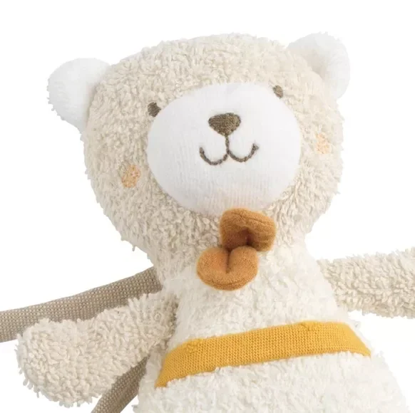Le mini musical Petit Soleil de Sauthon est un ourson très mignon avec un boitier musical intégré. En tirant sur son cordon, une douce musique amusera bébé. Vous pourrez l'attacher facilement grâce à ses liens aux barreaux du lit ou parc de bébé, sur son siège auto, sa poussette ou autre support de votre choix. Facile à attraper, bébé pourra aussi jouer avec en musique !