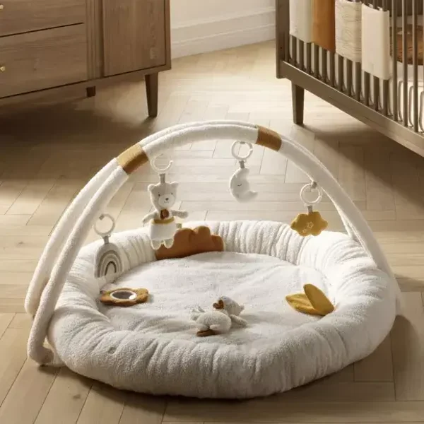 Le tapis d'éveil Petit Soleil de Sauthon est un cadeau de naissance idéal. Ultra doux et bien molletonné, bébé y sera installé confortablement pendant ses temps d'éveil. De nombreuses activités sensorielles permettront à bébé de découvrir le monde en s'amusant !