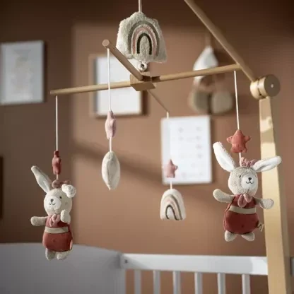 Mobile musical en bois avec jouets en coton - PETIT COEUR Sauthon Sauthon
