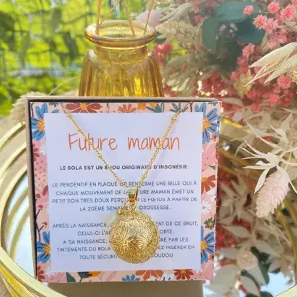 Bola de grossesse esprit bohème est pensé comme un bijou-totem qui créera un véritable lien entre bébé et vous tout au long de votre grossesse.