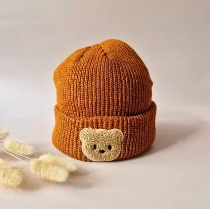 Bonnet Rattle Bear – Bonnet tricoté chaud couleur rouille pour bébés et tout-petits Rammelaartje Rammelaartje